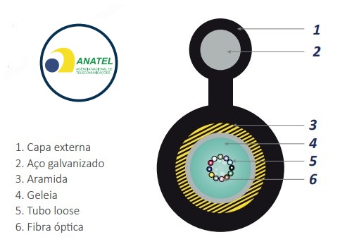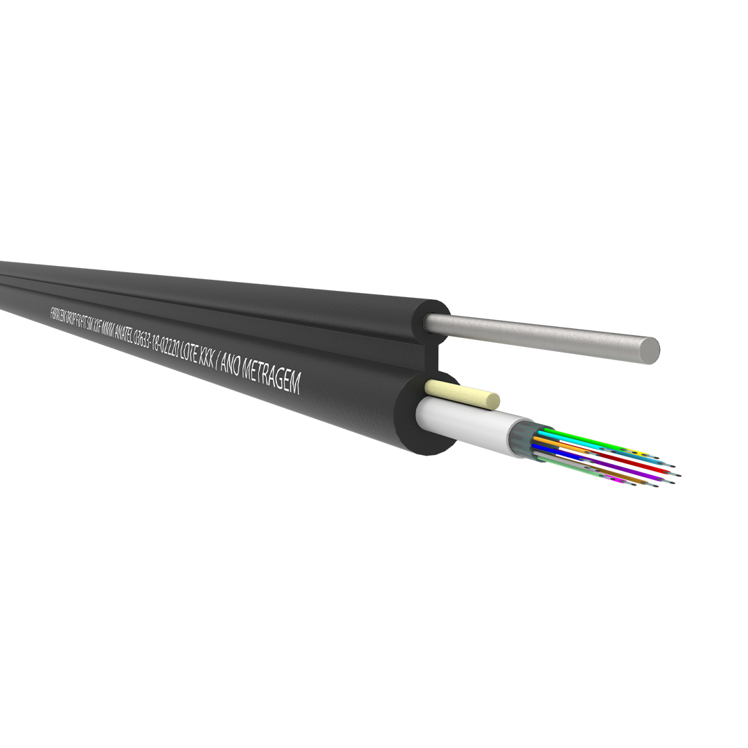 O Cabo Óptico Drop F8 Fit é constituído por fibras ópticas monomodo, revestidas em acrilato e resistência à penetração de umidade. Possui como elemento de sustentação fio de aço galvanizado (mensageiro) e fios de aramidas aplicados sobre o tubo loose. O material termoplástico aplicado por extrusão atende as categorias COG ou LSZH, protege o cabo contra a intempéries e ação dos raios UV. Possui 4 fibras e é indicado para instalação em vãos de até 80 metros em ambientes externos / internos.